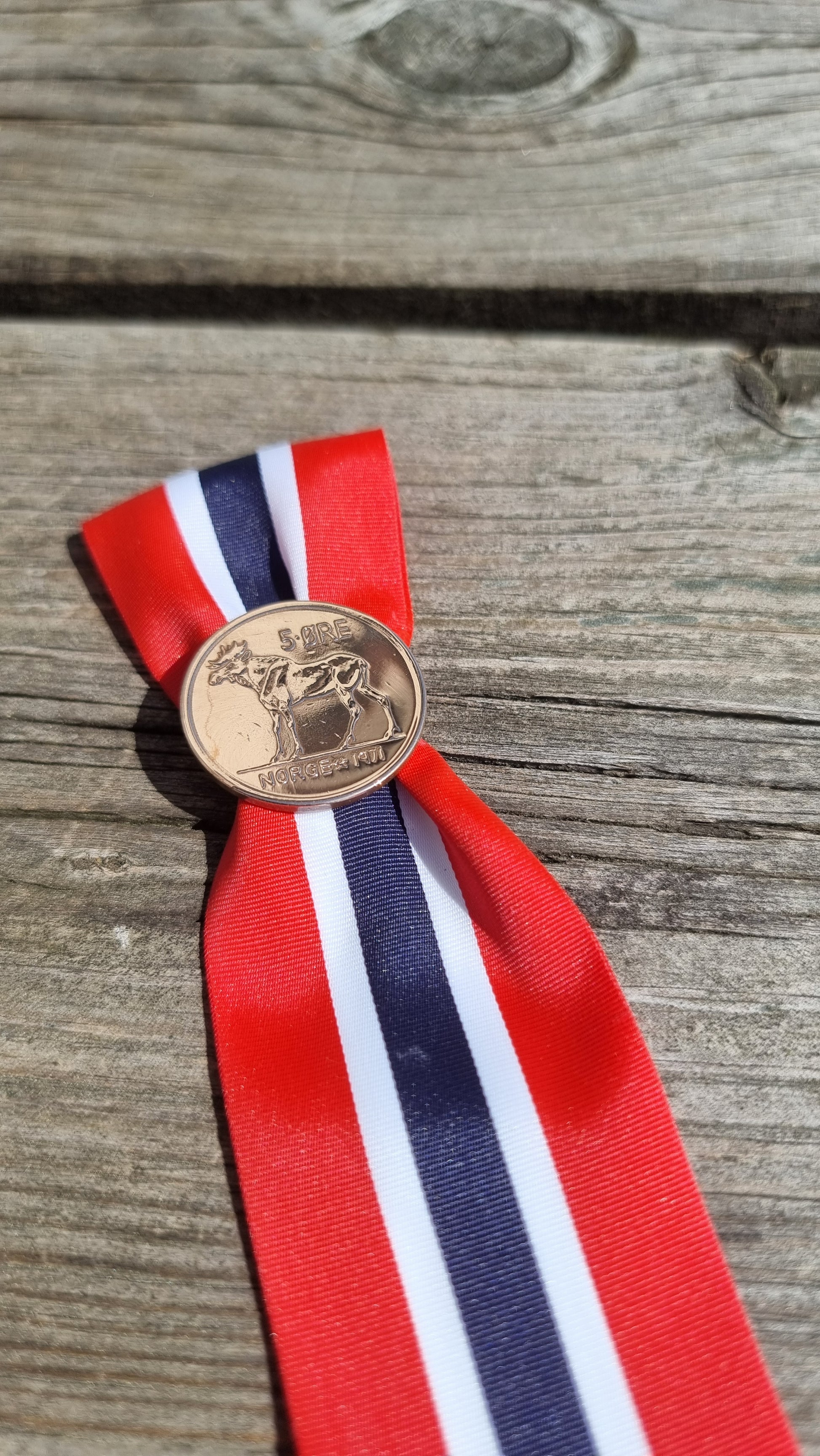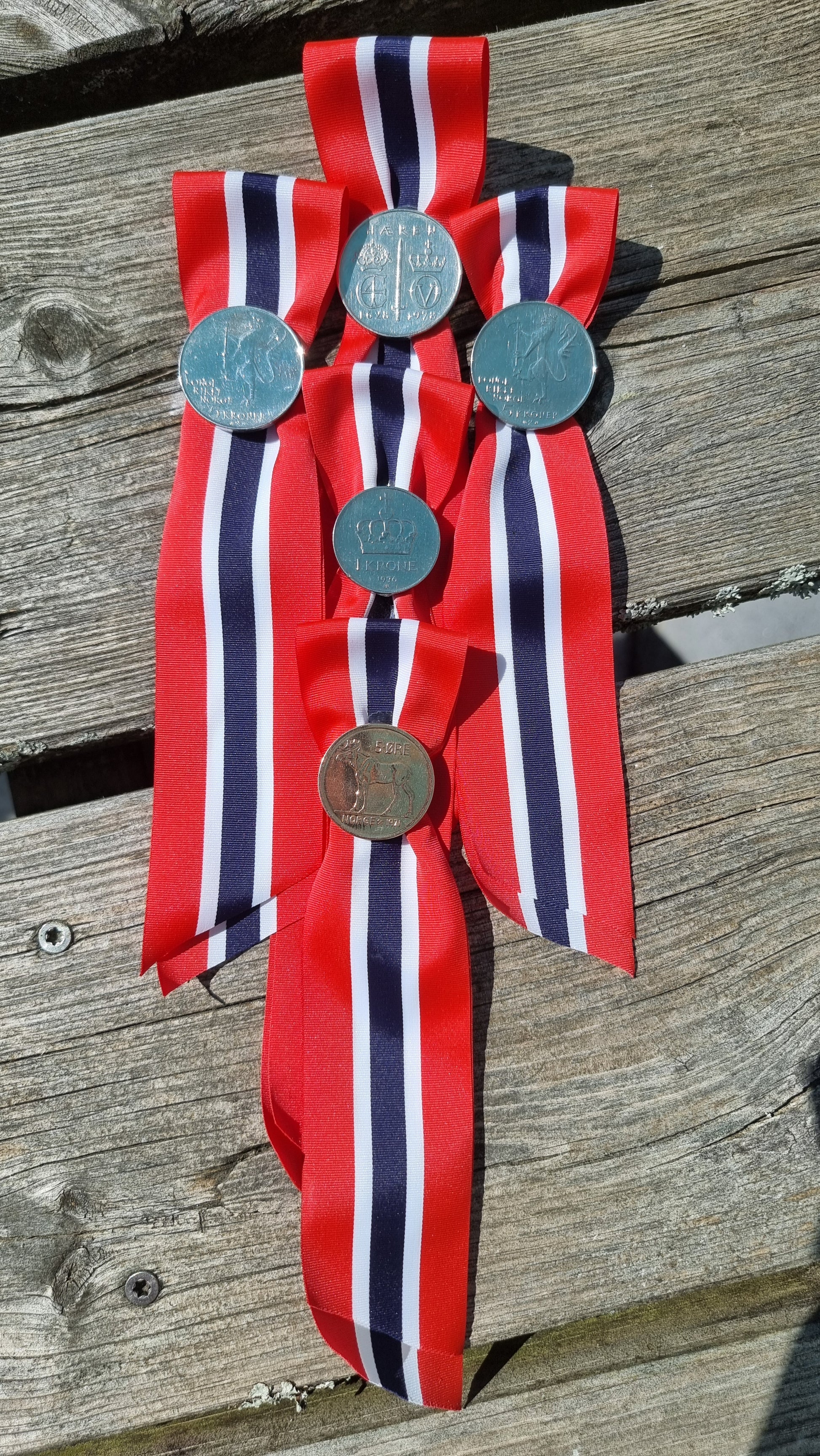 Forskjellige myntsløyfer med 5øring, 50øring, 1kr og 5kr