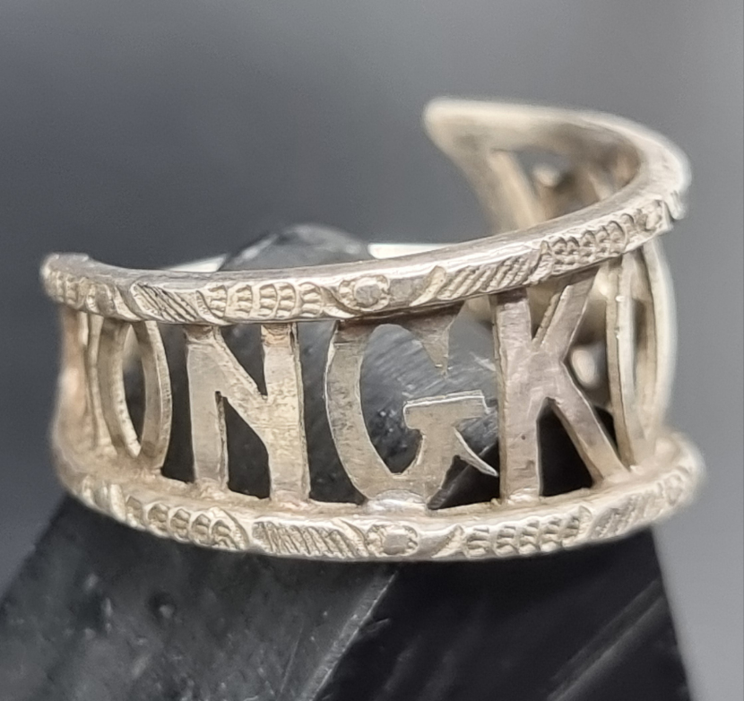 Hong Kong detaljert ring laget av en skje i sølvplett, flott og unik ring